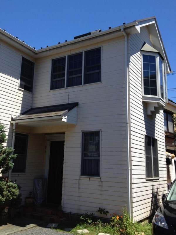 「以前借換えの相談をしに銀行に行ったんだけど、断られてしまったんだ。」実際に理由も分からずに銀行側から断られてしまうケースは決して少なくありません。ただ銀行の方からそう言われてしまうと、「うちはダメなんだな。」ってだれもが思ってしまいますよね。ご主人様もそう感じられていたようです。ただ銀行といっても一つではありません。きっとご主人様に一番合う銀行が見つかりますよ。中古でご購入された一戸建てで、もともとは薄い黄色い外壁だったようですが、今では全体的に白っぽい色合いに変色してしまったとのこと。実際にチョーキングもかなりでていましたね。ご主人様もそのことにはとっくに気づかれていたようで、ご希望の塗装工事も借換えとあわせてダブルでご協力させていただくことになりました。