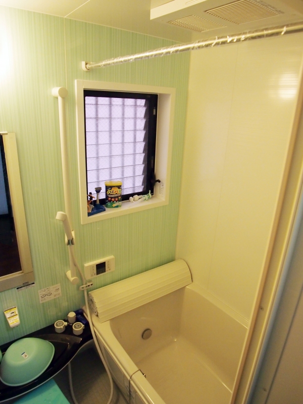「お風呂キレイになったわね〜。」見にきた親戚や友達、誰もが口をそろえたようにそう言ってくれます。私の一番のお気に入りはこのミントグリーンのパネルかしら。今まで特にこだわっていなかった浴槽内の空間が、まさかこんなにも憩いの空間になってしまうとは。今回工事をお願いして本当によかったと思っています。それにお風呂の掃除が今までよりも大分楽になりましたね。あの子供たちが、進んで掃除をやってくれるようになり、そこがまた嬉しい変化ですね。笑 お風呂の雰囲気もガラッと変わったので、ここは思い切って・・!桶からなにから変えられるものは全部入替ました。もちろんイメージカラーの緑にあわせて!毎日の入浴が本当に楽しみになりました。半身浴でゆったり時間かけて入浴するのが、今の私のマイブームになっています。