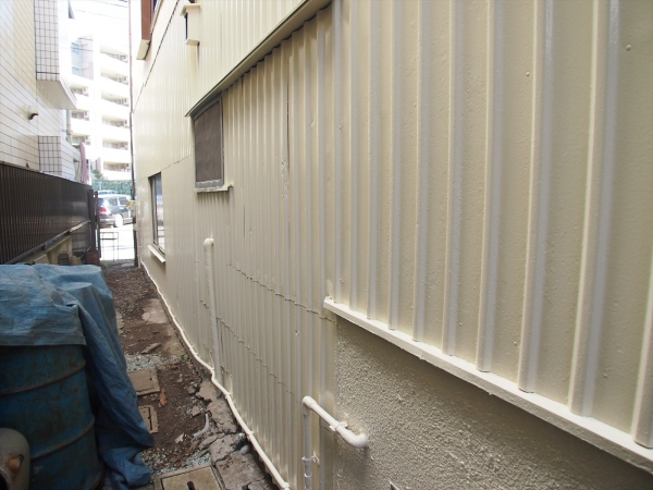 「また塗装の時期がきましてね。実際にこの書いてある金額でやってもらえるんですか?」そうおっしゃりながら弊社にお越しいただいたのはご主人さま。ご自宅の1Fを作業場として使われていらっしゃるようです。実際に7〜8年前に塗装がけをしたようなのですが、もう剥がれてきてしまっているようです。その日の午後に実際に現場をみさせていただきましたが、現状トタンの壁面のようですね。こういった壁は全体を丁寧にケレンがけをしないと、すぐにペリペリと塗膜が剥がれてきてしまいます。下地処理から入念な作業が必要になるということですね。しっかりと施工させていただきますね!